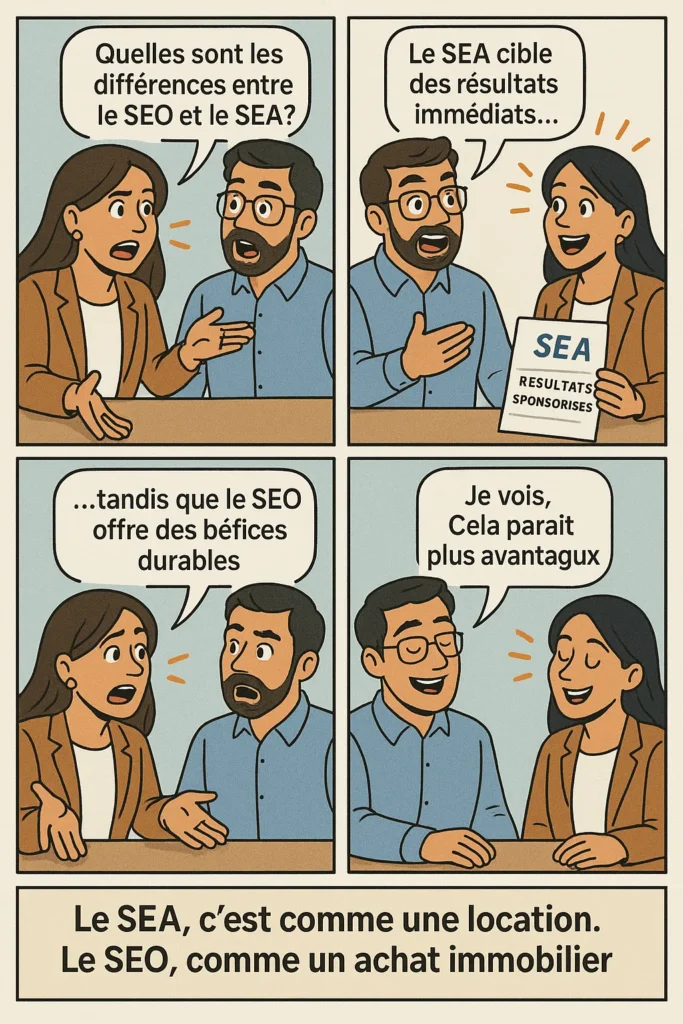 Contrairement au SEA, le SEO ne s’interrompt pas quand le budget s’arrête : c’est un investissement cumulatif qui renforce votre visibilité mois après mois.